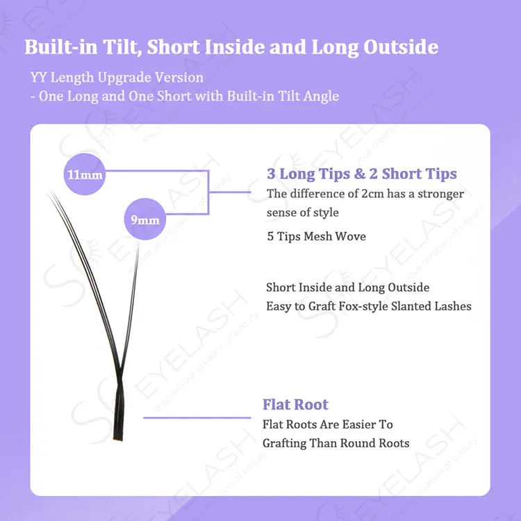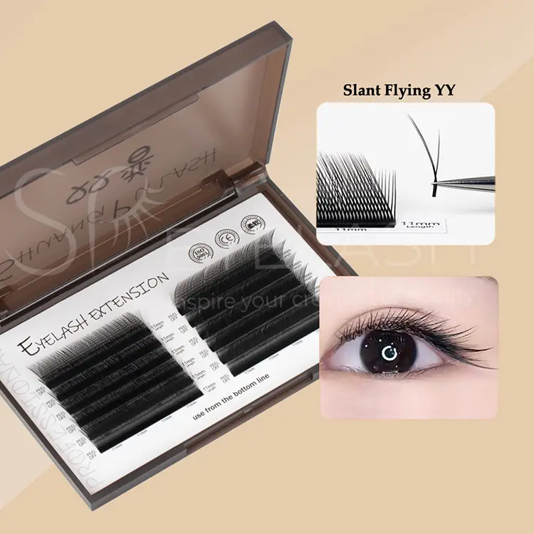 ایس پی برونی سلیٹ فلائی YY شکل کوڑے میں ایک منفرد ڈھلوان مکھی YY ڈھانچہ ہے ، جو قدرتی طور پر 3 لمبی اور 2 مختصر (واحد لمبائی 9-14 ملی میٹر اختیاری) کے ساتھ ذہین 5 نکاتی ڈیزائن کے ذریعے آنکھوں کے دم پر اوپر کا اثر پیدا کرتا ہے۔ کراس بنائی کی تکنیک پرتوں کا احساس پیدا کرتی ہے ، قدرتی محرموں کے مابین خلا کو پُر کرتی ہے اور ننگے میک اپ اثر کو حاصل کرتی ہے۔